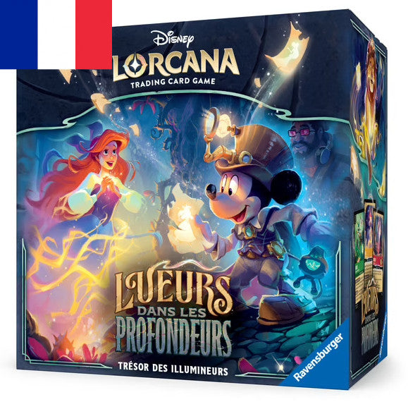 A l’intérieur, vous découvrez une boîte de rangement illustrée du Chapitre 10 Lueurs dans les Profondeurs accompagnée de 6 séparateurs de cartes, parfaits pour trier vos cartes Lorcana par encre ou par rareté. Le coffret Trove Pack contient également 8 boosters Lorcana Chapitre 10 aléatoires, chacun renfermant 12 cartes additionnelles, pour vivre l’excitation de la découverte à chaque ouverture. Que vous soyez en quête de cartes rares, brillantes ou légendaires, chaque booster est une promesse de surprise.