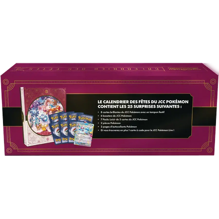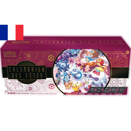Célébrez la saison des fêtes avec le Calendrier des fêtes du JCC Pokémon, qui vous offre 25 jours de surprises ! Cartes brillantes spéciales, boosters et autres produits... Ce calendrier contient des surprises Pokémon différentes à découvrir chaque jour !