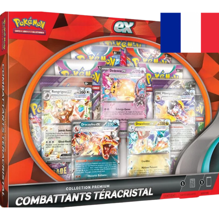 De plus, cette collection inclut 5 cartes Promo Téracristal parmi lesquels nous comptons Dracaufeu et Dracolosse, accompagnés de Rongrigou, Dedenne et Flamigator, ainsi qu’une carte à code pour le JCC Pokémon Live. Les Pokémon Téracristal se démarquent par leurs capacités défensives et offensives exceptionnelles, dominant les combats de leur puissance. Cette Collection Premium offre aux collectionneurs et joueurs de Pokémon l’opportunité d’ajouter des cartes exclusives et de renforcer leur arsenal pour des batailles toujours plus passionnantes.