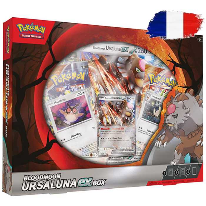 Cartes en Français. Produit officiel par The Pokémon Company. Vous achetez un Coffret Ursaking Lune Vermeille-ex en Français Pokémon JCC.