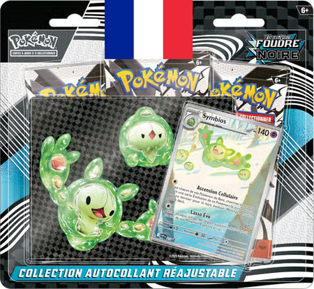 Voulez-vous tenir la main du Pokémon Multiplié ? Faites équipe avec Symbios en tant que carte promo brillante capable de faire évoluer tous vos Pokémon de Banc d'un coup^, puis décorez votre ordinateur, tablette ou téléphone avec les autocollants réajustables et résistants de toute la chaîne évolutive : Nucléos, Méios et Symbios ! Retrouvez ensuite davantage de Pokémon de la région d'Unys dans les trois boosters de l'extension spéciale Écarlate et Violet - Foudre Noire !