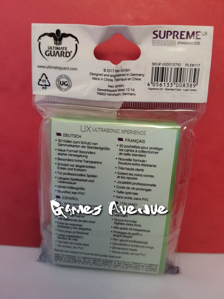 Ultimate Guard - Protèges Cartes par 50 Supreme UX Couleur Vert Clair